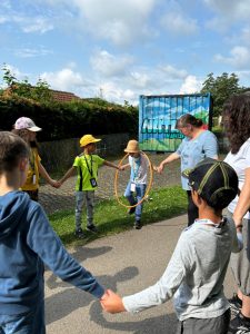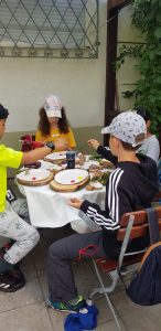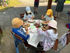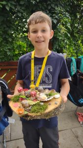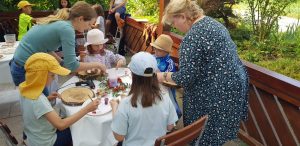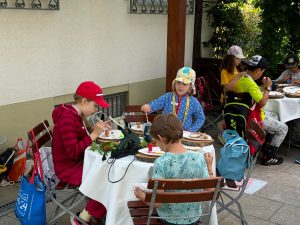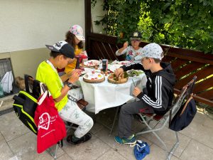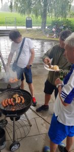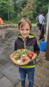 Überglücklich und aufgeregt kehrten wir zu unserem Ausgangspunkt zurück, gerade rechtzeitig, um dem Regen zu entkommen, der auf uns niederprasselte, als die Helfer Frank, Tomas, Martin und Metin die Grills anwarfen. Als die Eltern sie abholten, präsentierten die Kinder stolz ihre Ergebnisse und gingen satt und glücklich über den schönen Vormittag nach Hause.
