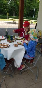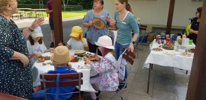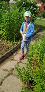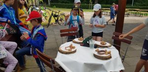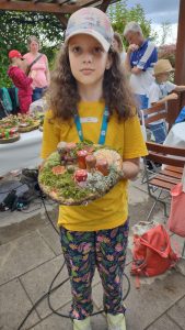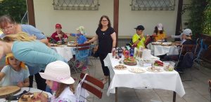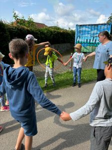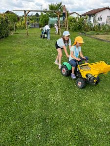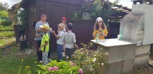 Um die bemalten Sachen trocknen zu lassen, ging unsere Gruppe bei strahlendem Sonnenschein auf Schatzsuche. Es war sehr spannend, von Station zu Station zu gehen und nach Hinweisen zu suchen, die sie in die Gärten der Vereinsmitglieder führten. Unsere fleißigen Führerinnen Nadine, Fayrus, Patrizia, Sevim und Sabine nahmen die Kinder mit auf eine echte Schnitzeljagd. Spiele, Rätsel, Gleichgewichtsübungen, Rätsel und Puzzles führen die Gruppe in den Garten, wo die Schatztruhe versteckt ist… aber wo ist sie wohl versteckt?